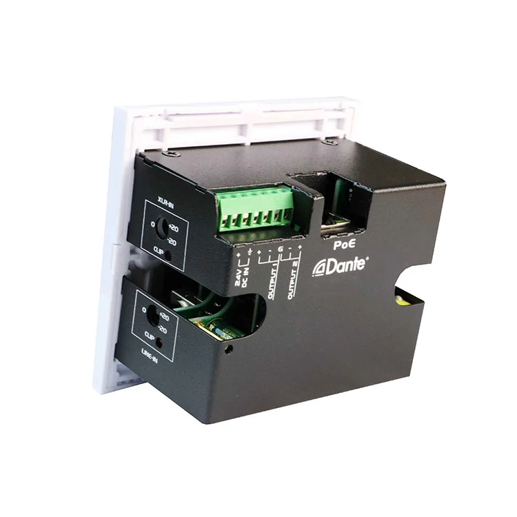 2CH Dante viðmót 2 MIC/Line Inputs x 2 Outputs viðmótspjald er fullkomið fyrir fagleg hljóðforrit, svo sem ráðstefnusalir, lifandi hljóðuppsetningar, útvarpsstöðvum og uppsettum AV-kerfum, þar sem áreiðanlegt Dante-til-analog og hliðstætt til-dante umbreyting er krafist í samhliða, rack-frjálsri formstuðul. Veggfest hönnun þess gerir kleift að hreina og skilvirka samþættingu í ýmsum umhverfi en viðhalda hágæða hljóðárangri.