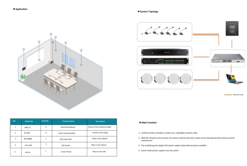 o Sameining POE aflgjafa: Samstarf með POE rofum til að átta sig á einum snilld aflgjafa + gagnaflutning Dante hljóðnema/hátalara (svo sem Shure MXA röð).